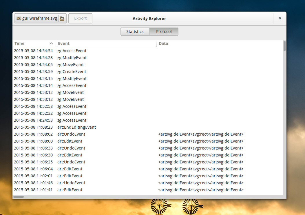 We also have a few first screenshots of the Artivity browser: the Gnome Activity Journal plugin which allows browsing data collected from Inkscape. In the next blog entry I will need to outline how the whole system will work in relation to the existing tools.