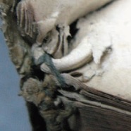 Following these same ideas, among the European books studied in the dissertation and the ones studied in this last research, I found a total of twenty-one books, specially Spanish and French with fibres of tanned leather that can be seen adhered to the spine of the textblock, which are clear evidence of an earlier leather cover, it is therefore, possible that the textblocks, with or without their earlier leather cover, arrived from Europe already sewn and the present replacement limp, laced-case covers were made in Mexico. Given the fact that anyone who travelled or sent goods to Mexico, even if not for commercial purposes, had to pay the transportation fees, the characteristics of these books raise the possibility that it was chosen to remove the heavy covers of the bindings, transport them without cover and, once in Mexico, asked to the bookbinder to put a new cover, but this time a less expensive one made of parchment.
